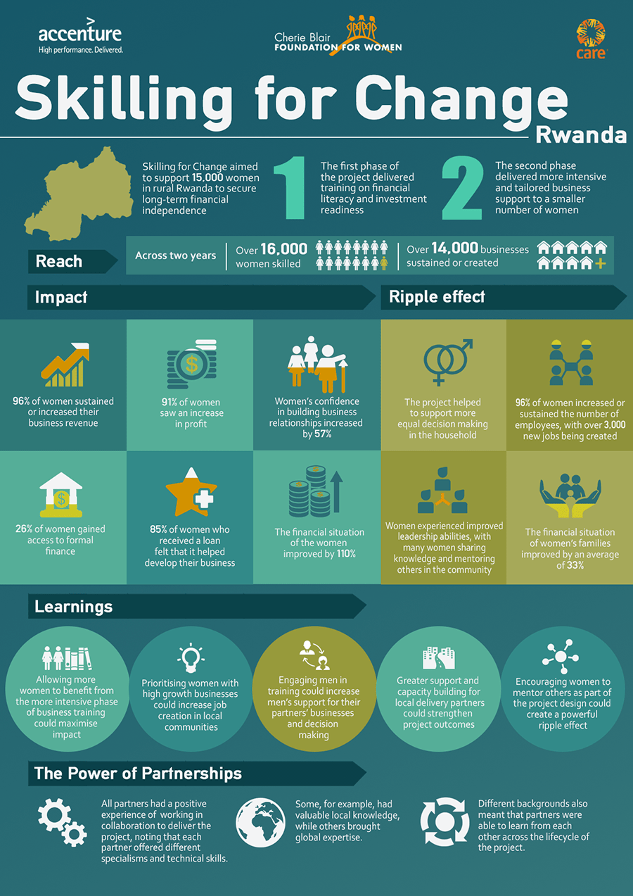 In 2014, with the support of Accenture, as part of the Accenture Foundation’s corporate citizenship focus Skills to Succeed, the Cherie Blair Foundation for Women launched its ambitious ‘Skilling for Change’ project in partnership with CARE International.